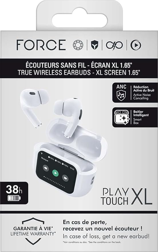 Force - Ecouteurs Play Touch True Wireless ANC Ecran XL tactile - Blanc